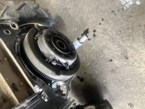ヤンマートラクタークラッチ修理中です、ただいま、エンジンと、ミッション、真っ二つ