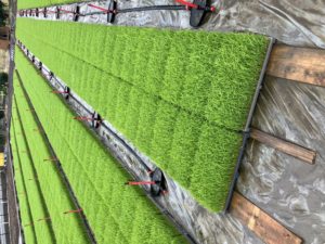 先月種まきした稲がここまで育ちました、もうすぐ田植えが出来ますね!立派に育ってくれてます!